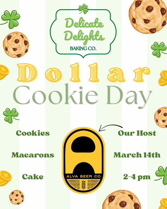 On the first Friday of each month, enjoy fresh baked cookies for $1. These are classic, crowd favorite flavors made with the same quality ingredients and love you expect from Delicate Delights.. just at an even sweeter price.